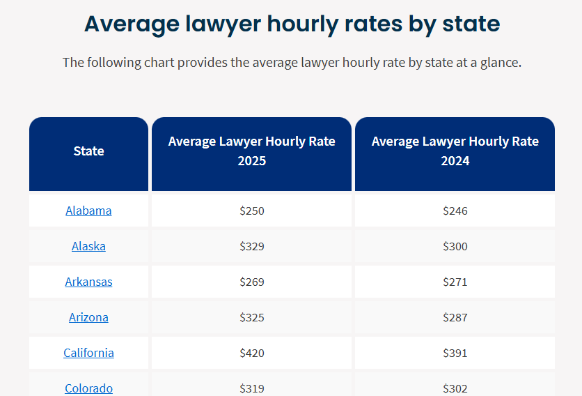 Example: Dating back to 2016, Clio’s Legal Trends Report is internally linked to a clean archive of pages that home machine-readable HTML tables (example below) detailing relevant stats and data.