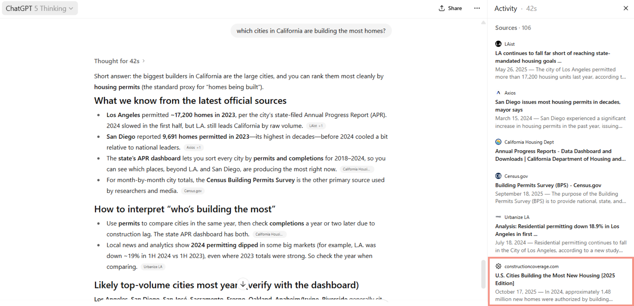 What this tells us? ChatGPT rewards localized data studies, specifically on real estate. Aim outreach at local and state outlets.
