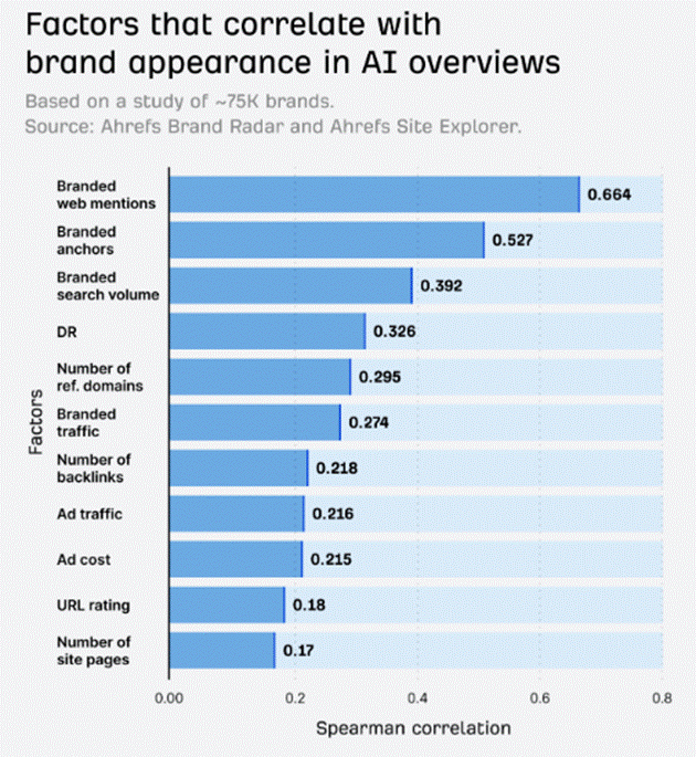 According to Ahrefs, the three content signals correlated most strongly with AI overview results, in order of importance, are:
