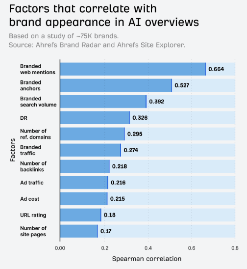 According to Ahrefs, the three content signals correlated most strongly with AI overview results, in order of importance, are: