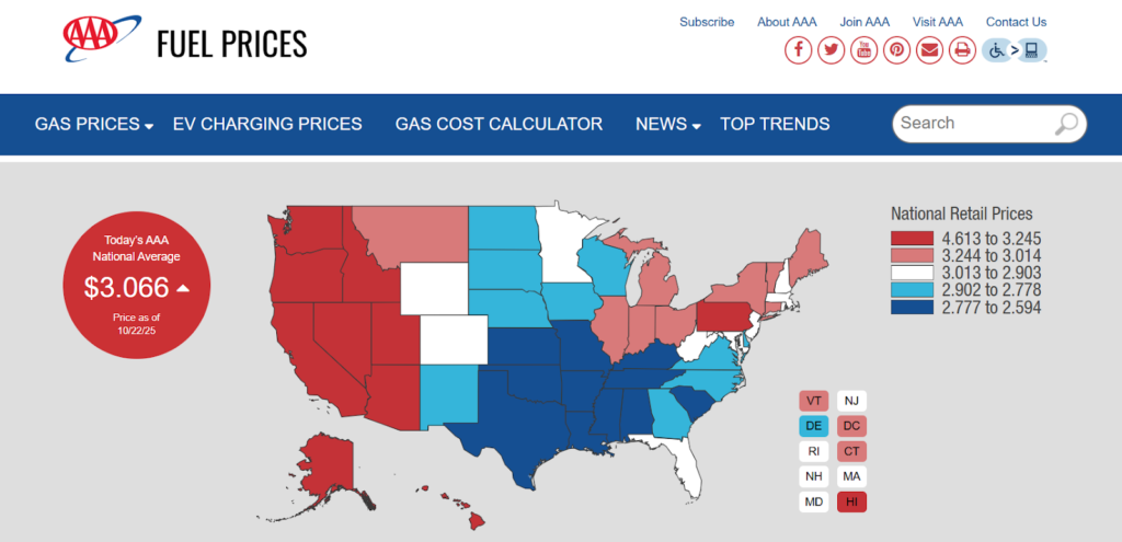 Example: AAA live gas prices map includes an interactive map, html table, time stamp, and names their data average the “AAA National Average” to encourage citations that include their brand name.
