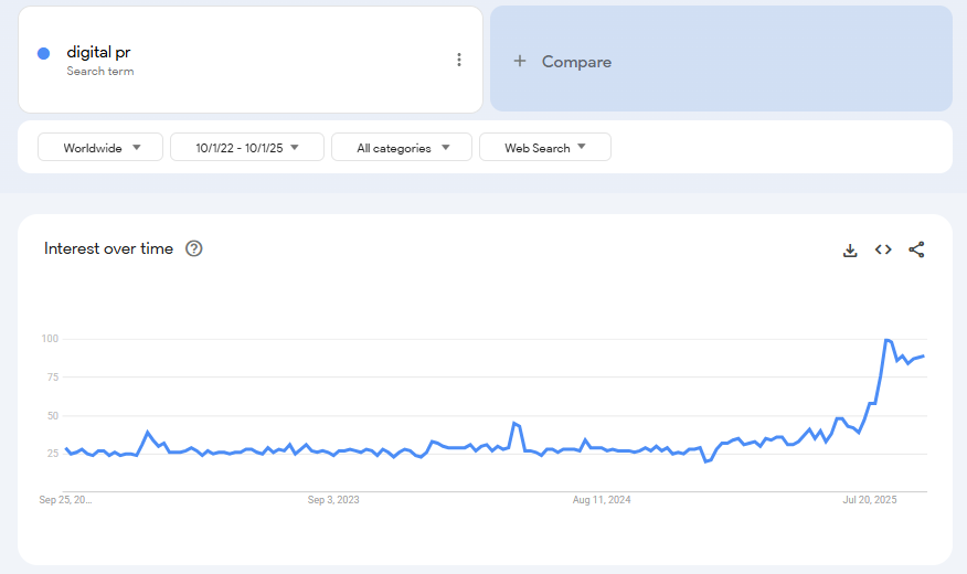 Google Trends data shows that digital PR has been trending up in 2025. The increasing interest aligns with the increasing use of generative search.