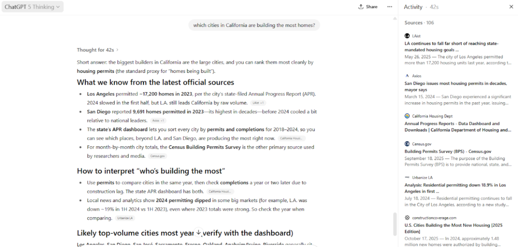 What this tells us? ChatGPT rewards localized data studies, specifically on real estate. Aim outreach at local and state outlets.