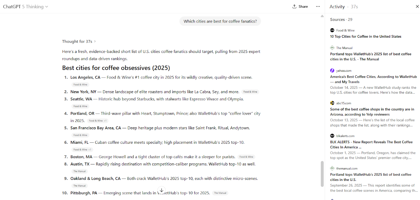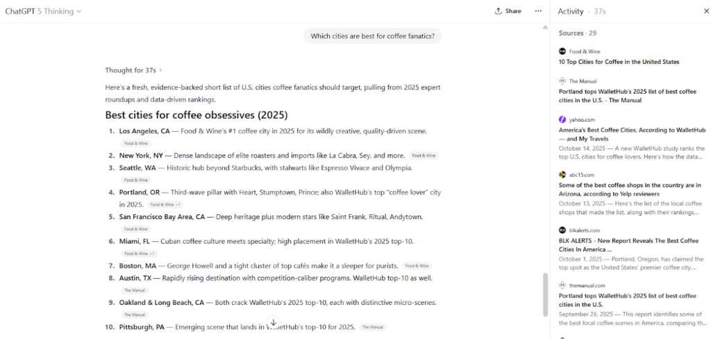 City studies highlighting the best of for different lifestyles, hobbies, or preferences are another type of digital PR campaign that historically earns media attention. Does ChatGPT take these campaigns into account?