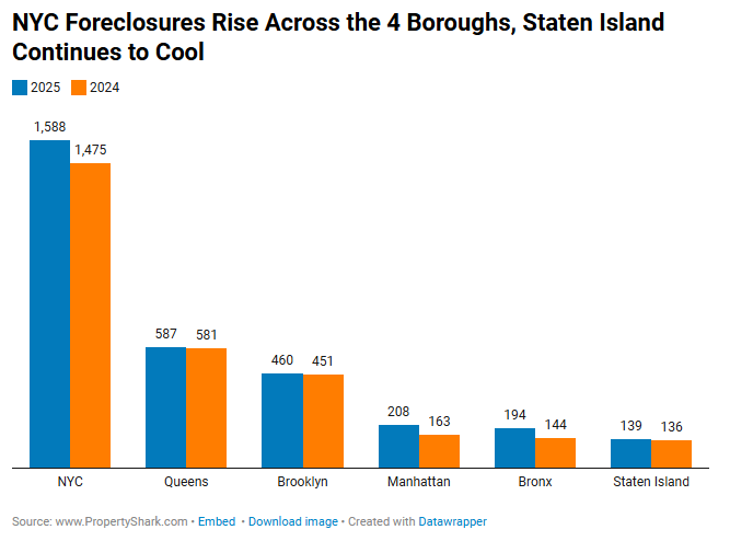 | PropertyShark | NYC Foreclosure Report | Hyper-Local Market Report | Distress data + borough-level insights | https://www.propertyshark.com/Real-Estate-Reports/nyc-foreclosure-report/ |