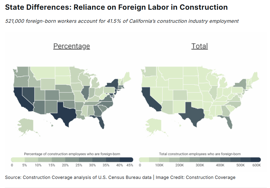 | Construction Coverage | Cities Where the Construction Industry Depends Most on Foreign Workers | Multi-Metric City & State Ranking | Labor economics + housing supply pressure | https://constructioncoverage.com/research/cities-where-the-construction-industry-depen |