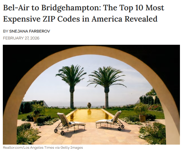 | Realtor.com | America’s Most Expensive ZIPs 2026 | ZIP-Level Luxury Ranking | Wealth concentration + hyper-local competition | https://www.realtor.com/research/americas-most-expensive-zips-2026/ |